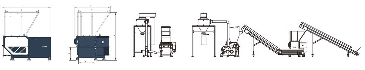 | 进料口尺寸 Inlet size (D*F)(mm) | 1210*1210 | 1300*1270 | 1420*1500 | 1420*1700 | 1420*1900 | 1420*2100 | 1430*2102 |